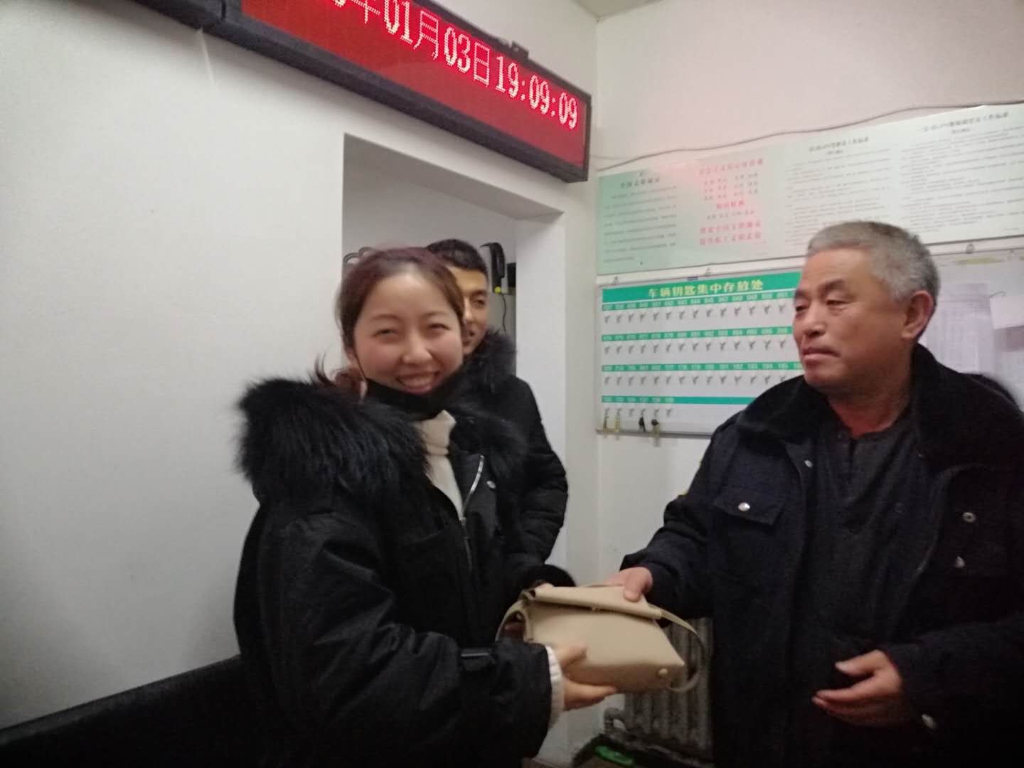 王成勇總說“作為公交車司機(jī)拾到錢物有責(zé)任物歸原主!彼沁@樣說的,也是這樣做的。1月14日,王女士乘坐王成勇所駕駛的9路公交車,從鐵西廣場站上車前往騰鰲鎮(zhèn)政府,下車時,不慎將裝有身份證、銀行卡等證件和200多元現(xiàn)金的米色女式包遺留在后排座位上,王女士事后發(fā)現(xiàn)時,也只記得乘坐的是9路公交車,于是抱著試試看的心態(tài)打車來到調(diào)度室,恰巧王成勇手拿一個女式包走進(jìn)調(diào)度室,看到失主來找王成勇立即上前將包交給她。王女士十分激動對王成勇說:“真的是太感謝您了,師傅您真的是位大好人!彼硎倦m然現(xiàn)金不多,但是眼看就要到年底了身份證銀行卡等一些證件對她來說十分重要,實(shí)在是沒有想到還能找回來。